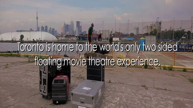 The world's first-ever double-sided, floating sail-in cinema located in the heart of downtown Toronto, just east of Sugar Beach. The launch of this event in 2011 marked the 100th anniversary of the Toronto Port Authority, renamed Toronto Ports in 2015.